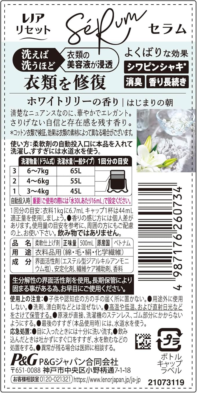 Lenor レノア 【まとめ買い】 リセット セラム 柔軟剤 ホワイトリリーの香り 本体 500mL+詰め替え 750mL