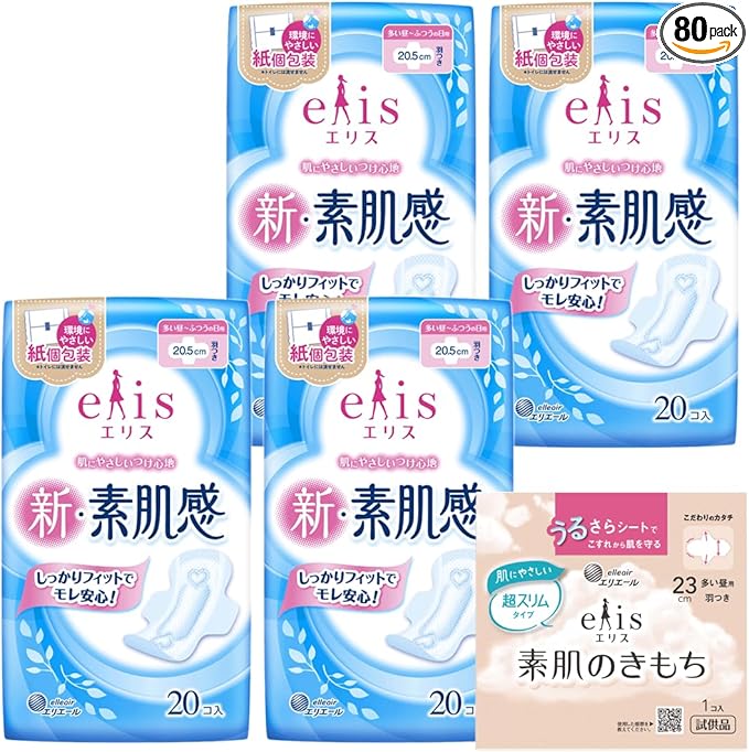 エリス 新・素肌感 羽つき 20.5cm (ふつう~多い日の昼) 80枚(20枚 4パック)【まとめ買い】+おまけ付き 【限定商品】