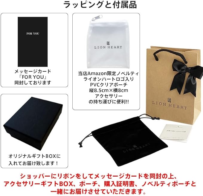 Amazon限定Wayng別注ノベルティも同封!「ライオンハートロゴ入りPVCポーチ」縦 約8.5cm 横 約8cm、アクセサリーの持ち運びに便利!!