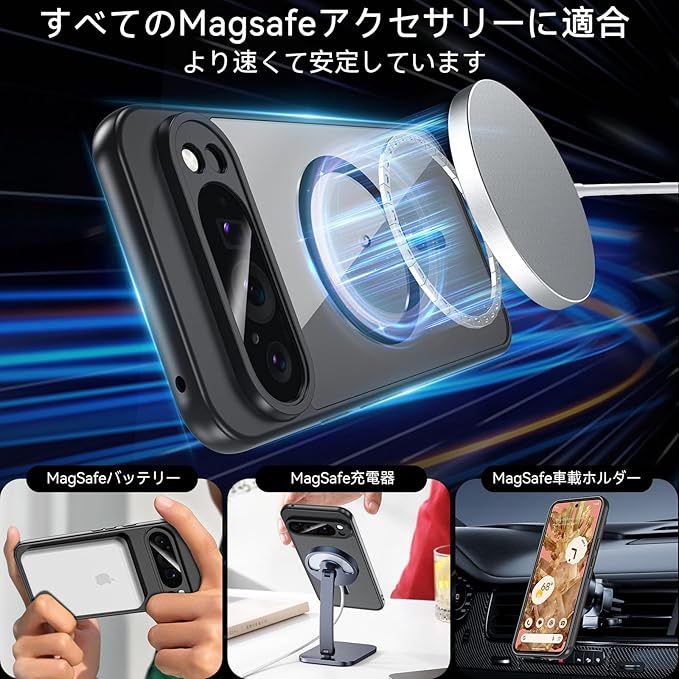 【MagSafe対応&より高速 簡単に充電】ケース内部には2024年に新開発された強力なマグネットが搭載されており、吸着力と安定性が向上し、MagSafe充電対応で差し込みのいらない超簡単・超高速充電を実現しています。また、MagSafe対応アクセサリーもいろいろ!MagSafe充電器、MagSafeバッテリー、MagSafe車載ホルダー、MagSafeリングなどのMagSafeに対応した Pixel9 Pro XL ケース です。いつでもどこでも使いやすいMagSafeデザインです。