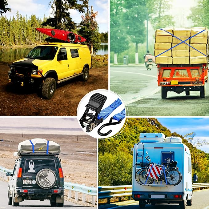 AWELCRAFT ラチェット式タイダウンベルト 4.5Mx4本 GS認証取得済み 破断荷重450KG 荷締めベルト 幅25mm ラッシングベルト 荷締機 固定ベルト 固定バンド 締付固定 多用途 引越し 運搬用 ブルー