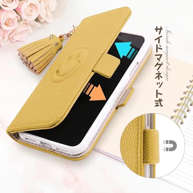 【高品質な素材】スマホケースは柔らかくて上質なPUレザーで作られ、耐熱性と柔軟性に優れ、指紋や油汚れにも強いです。表に立体的なスマイルパターンプラスステキなタッセル、かわいくておしゃれなの雰囲気の中にエレガントな高級感も感じられます。