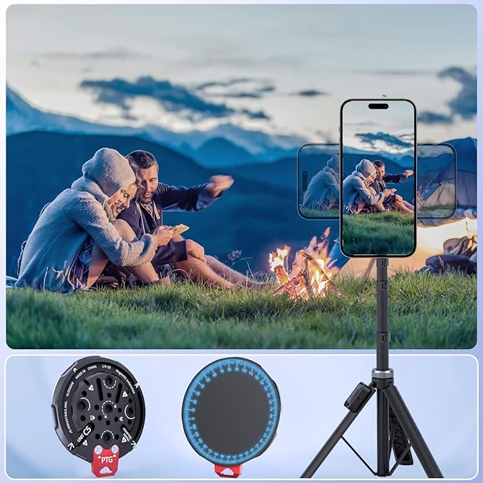 【自在なアングル調整】このマグネットマウントは片手で360 の角度調整が可能です。最良の撮影効果を得るには、スマホを直接回転させずに、持ち上げて設置または位置変更してください5つの1/4標準ネジ穴があり、適切なネジ穴を自由に選択し、角度を調整し、満足のいく写真を撮り、美しい生活を記録できます。さまざまなタイプのパン/チルトや三脚への取り付けに適しています。
