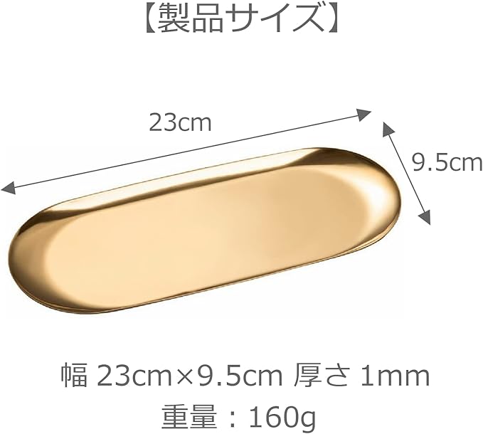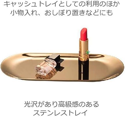 ColorfylCoco ステンレス キャッシュトレイ コイントレイ 会計皿 おしぼり置き 釣り銭 トレー 楕円形 Lサイズ (23cm幅) 金 ゴールド