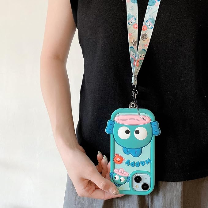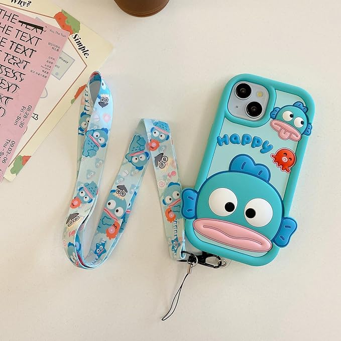 RUIKER iphone 13promax 用 ケース 可愛い ストラップ ハンギョドン 3D立体 耐衝撃 韓国 iphone12promax アニメ キャラクター スマホケース 対応 iPhone 12promax ケース シリコ ン ソフト アイフォン13promax スマホケース