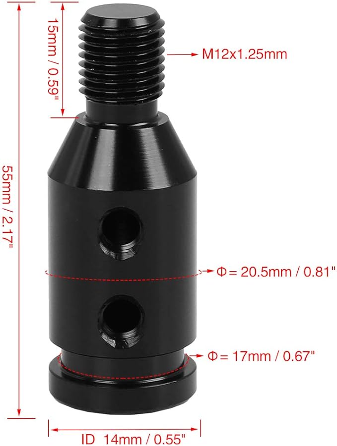 限定 M12 x 1.25ネジ山なしシフター用カーシフトノブアダプター - シフトノブ変換アダプター、ブラック、1個入り