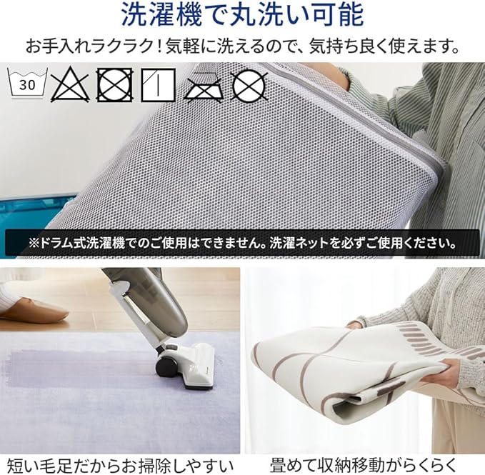 ベルーナ(BELLUNA) ラグ カーペット 厚手 3畳 2畳 1.5畳 洗える 撥水 はっ水機能付き オールシーズン ホットカーペット対応 床暖房対応 快適 軽量 ウォッシャブル 滑りにくい おしゃれ (556234-201)