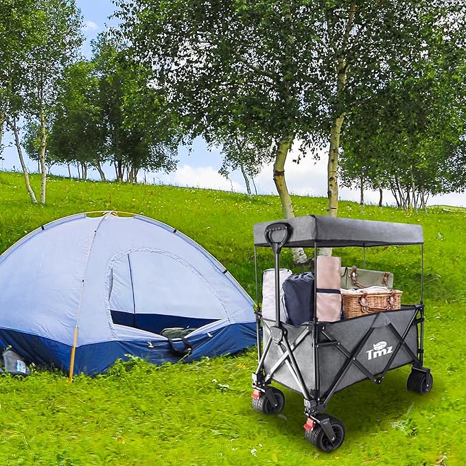 【組み立ては不要です】すぐに使用できるこのキャンピングカーは大容量で、必要なアイテムを一度にたくさん運ぶことができます各タイヤに2つのベアリングと各前輪フレームにプレッシャーベアリングが付いているため、乗り心地はスムーズで静かで、引っ張りやすい