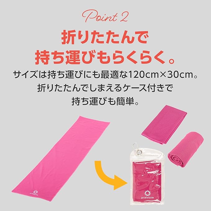 【限定商品】プリマソーレ(primasole) 超冷感アイスタオル 熱中症対策 紫外線カット カラビナ付き 持ち運び便利 大きめサイズ スポーツタオル PSS02NH076 ピンク
