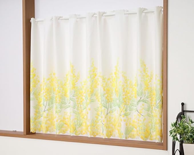 カフェカーテン はっ水加工 外から見えない お風呂などで 2655ミモザ柄 プリント 幅145x丈60cm1枚入
