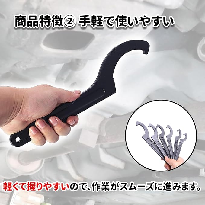 PPIOOY フックレンチ 車高調 レンチ 引掛スパナ 22~85mm 8本セット 車高調整 車高 調整 工具 整備 メンテナンス スパナ フックスパナ ピンスパナ フックタイプ (8)