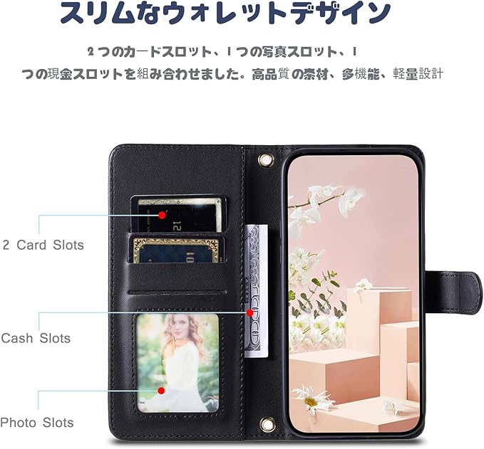 【カード収納機能&ストラップ付き】oppo reno 5a ケースの収納力抜群、3つのカードスロットとウォレットポケットを装備し、日常の支払いや名刺を携帯できるほか、お気に入りの写真を収納できるクリアカードスロット。肩掛けのストラップの長さが調整しやすいのです、特にポケットがない服が多いのでストラップ付きなのがとても便利です。お出かけ時はショルダーに、家でゴロゴロする時はご自由に外します。