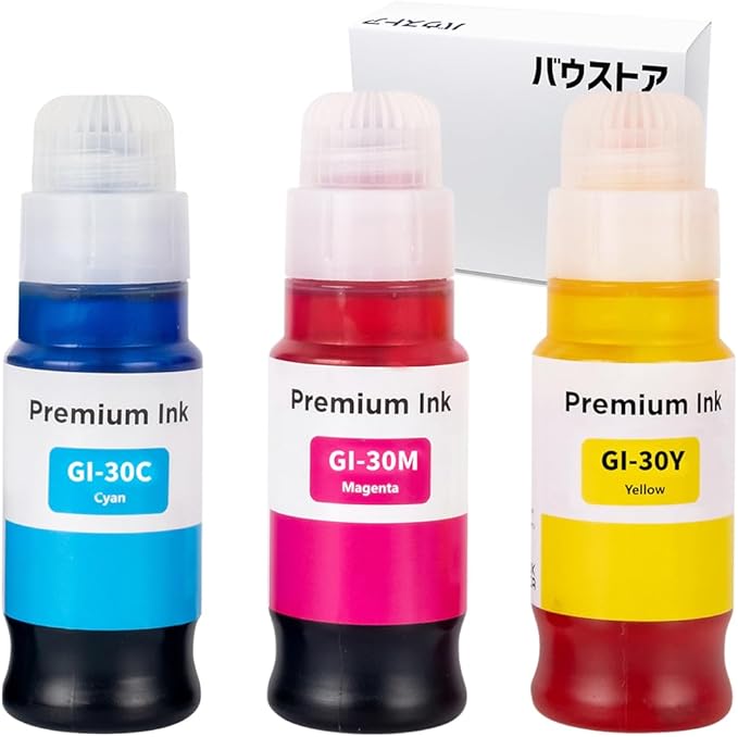 バウストア Canon GI-30 3色 シアン・マゼンタ・イエロー 用互換インクボトル 対応機種:G7030 / G6030 / G5030