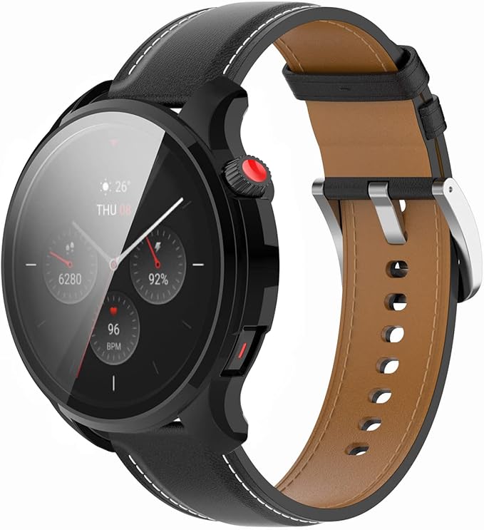 [SHEAWA] for Amazfit Bip 6/5/GTR 4 バンド ベルト 本革 レザー GTR3/GTR3 PRO/GTR 47mm/Balance 交換バンド 22mm 替えベルト アクセサリー (ブラック)