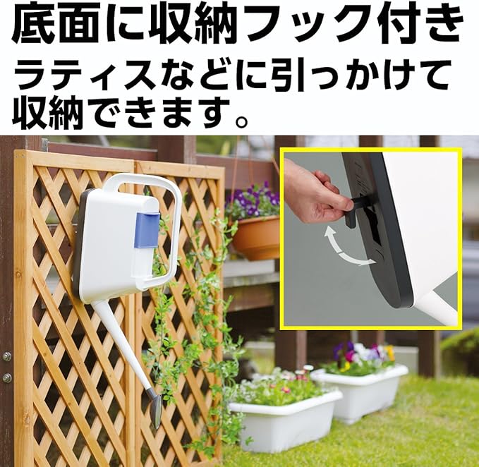 底面にはフックを内蔵しているため、フェンスやラティスにかけられます。