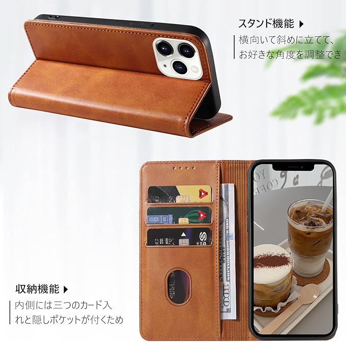 【KWATUNG】iphone 11proケース手帳型 レザー iphone11proケース 手帳型 軽量 放熱性 あいふぇいす11ケースpro 手帳型 薄型 マグネット式 アイフォン ケース 11pro カード収納 スタンド機能 スマホケースiphone 11pro 衝撃吸収 落ち着いた色 スマホケースiphone11プロ 手帳型【ライトブラウン】