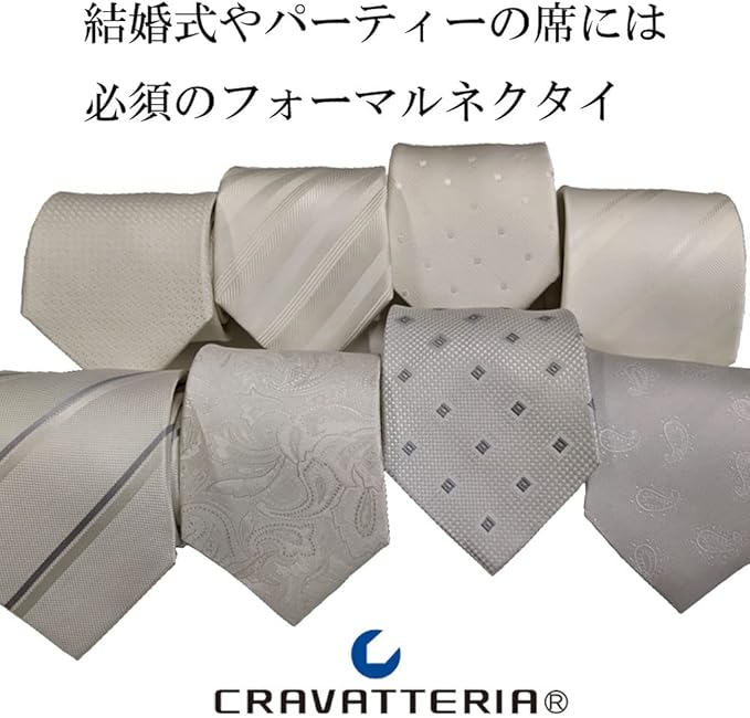 [C CRAVATTERIA] フォーマルネクタイ 礼装タイ 白 シルバー シルク100% 絹 結婚式 披露宴 慶事用 パーティー セレモニー テフロン 撥水撥油防汚加工 トリプルプロテクション