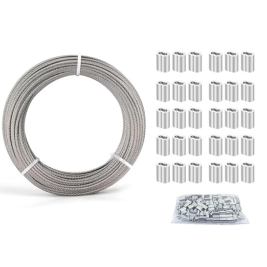 ドウシュウ(同舟) ワイヤー 1.5/2/3/4mm ワイヤーロープ ステンレスワイヤー 長さ15M 物干しロープ メッキワイヤー アンテナワイヤー wire rope 7 7構造 切断荷重165kgf(SUS304)アルミスリーブ30個付き 耐食性 工事 アンテナ固定 地震対策 落下防止 林業 DIY フェンス (直径1.5mm 長さ15m スリーブ30個入り)