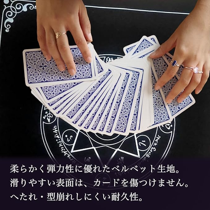 【柔軟性と弾力性に優れるベルベット生地】柔らかく滑らかなのでカードが滑りやすくリーディングをスムーズに行えます。タロットカードを傷つけないのでハードな使用にも適しています。また弾力性があるので型崩れにしにくく、へたれにくい仕様になっております。