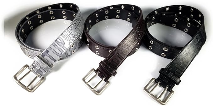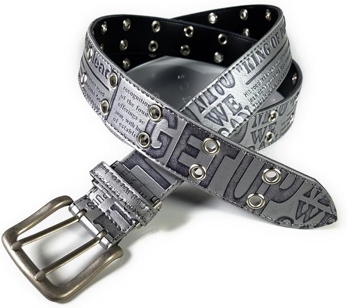 [シーランド] ロング ダブル ハトメ ベルト 英字柄 ウエスト50~130cmまで:幅40mm 【シルバー】 日本製