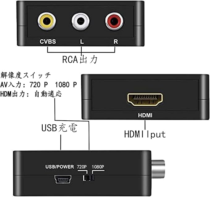 RCA to HDMI 変換コンバーター AV to HDMI 変換器 USBケーブル付きhdmiをサポートする旧式テレビネットワークセットトップボックス Xbox PS4 カーナビなど対応