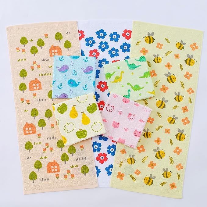 ・いろんな柄がたくさん入った、個性的でかわいいプリントタオルのお徳用セットです。