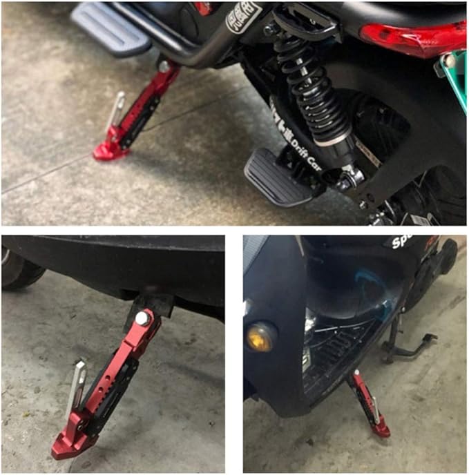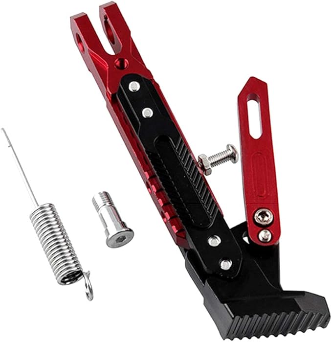 HANSWD オートバイ バイク用 サイドスタンド フット キックスタンド 高さ調整可能 アルミ合金製 取り付け簡単 交換用 ブラック パーキングスタンド 19㎝~26㎝ (レッド)