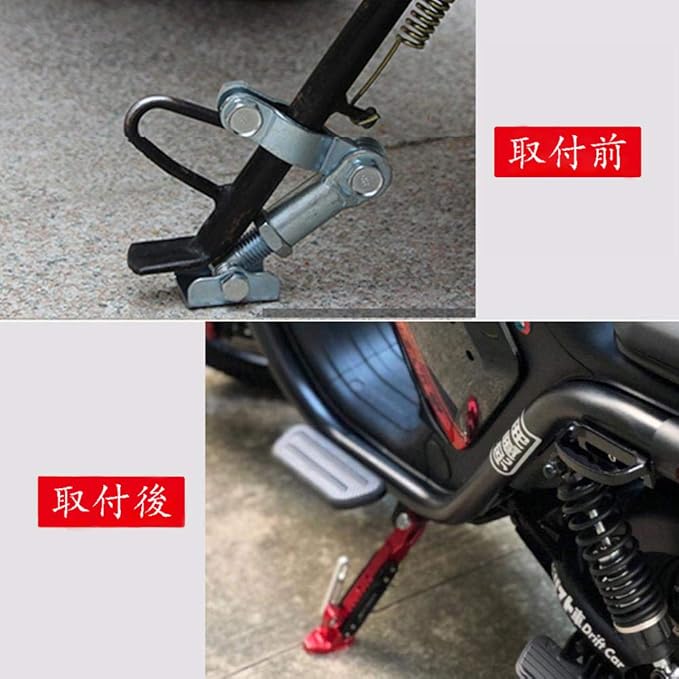 オートバイフットサイドサポートスタンドオートバイが駐車/倒れた時、フブラケットが先に地面に接触し、車輪と支持点を形成し、衝突 傷が防止できます。駐車の時に、耐荷重の機能が抜群で、オートバイの安定性が保証されました。