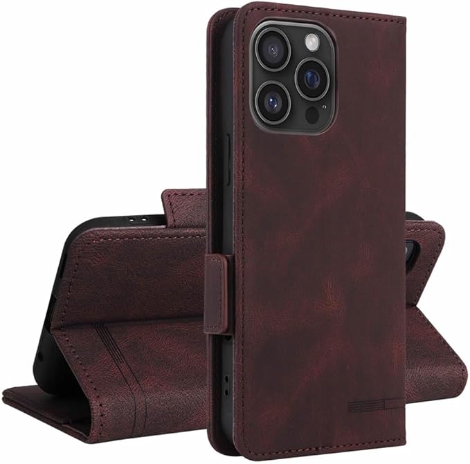 iPhone16 シリーズ ケース スマートフォンケース 手帳型ケース 二つ折りケース カバー マグネット 定期入れ ポケット シンプル スマホケース TPUケース スタンド機能 携帯ケース (ブラウン, iPhone16 Pro)