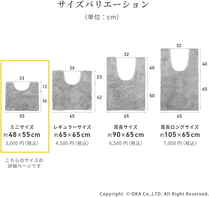 オカ(OKA) 乾度良好Dナチュレ トイレマット ミニサイズ (約48cm 55cm) ホワイト (かんどりょうこう 吸水 速乾 抗菌 防臭 トイレ 洗える)