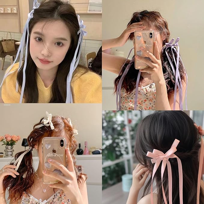 shefun リボン ヘアクリップ 小さめ 4.5cm ヘアピン 小さい ヘアリボン 細い 蝶結び 髪飾り ツインテール 髪留め 長35cm リボン ヘアアクセ クリップ ミニ 白 ピンク 紫 水色 8本セット 可愛い ヘアアクセサリー JP300