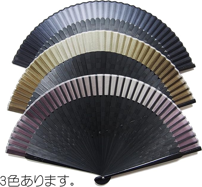 旭王 扇子職人の手作り 紳士 短地 シルク 扇子 骨色黒染 22cm 40間 中骨レーザー加工 市松模様 パープル 169006
