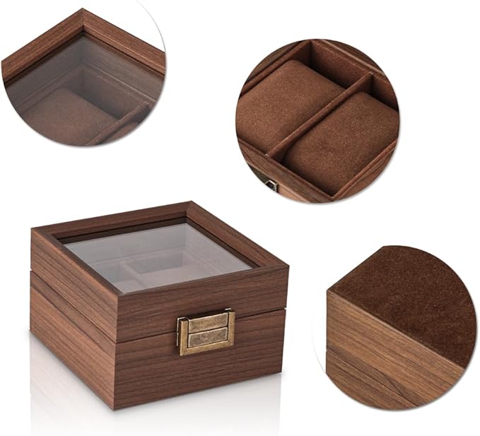 落ち着いた色味の木製収納ケースは大切な腕時計コレクションに相応しい安心感を与えます。シンプルですが、機能的なデザインは深さと直線にこだわり、上品と高級感を与えます。