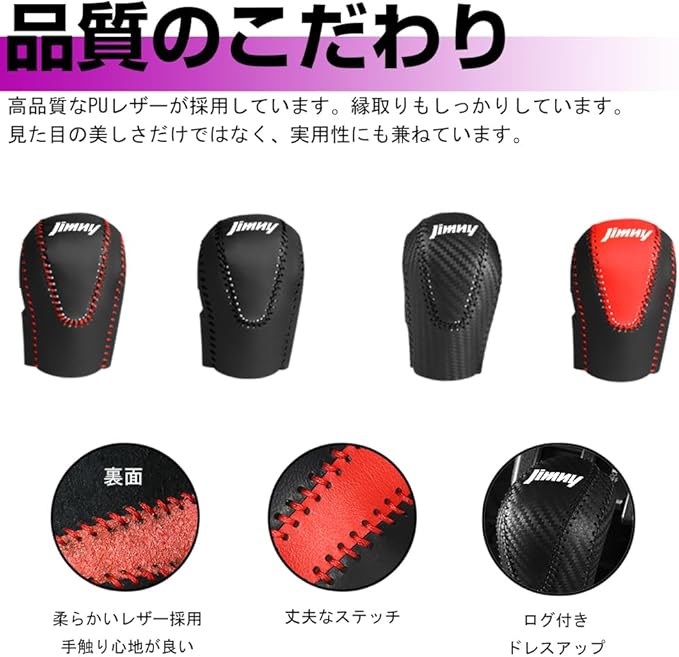 【材質】:より良い感触のためにPUレザーが採用しています。異臭もない、柔らかで使い心地が良い、擦り傷に強いです。耐摩耗性、耐水、汗を吸い取る機能もあります。シフトレバーは使用頻度の高いパーツです。毎日触れる場所だからこそ、お手入れが必要です。変色、汗染みなどになりやすいですが、本製品を装着することによって、経年劣化やダメージを軽減します。