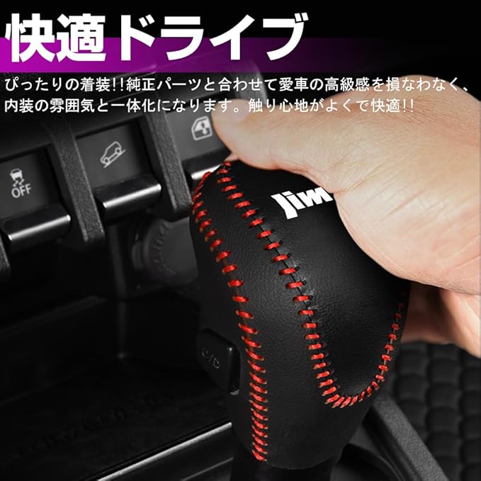 XIKER スズキ ジムニー/ジムニーシエラ JB64W JB74W オートマ 専用 レザーギアシフトノブカバー シフトレバー セレクトレバーヘッド保護カバー AT専用設計 傷 汚れ防止 インテリ 被せるだけパーツ 内装 カスタム パーツ ドレスアップ (ブラック&レッドステッチ)
