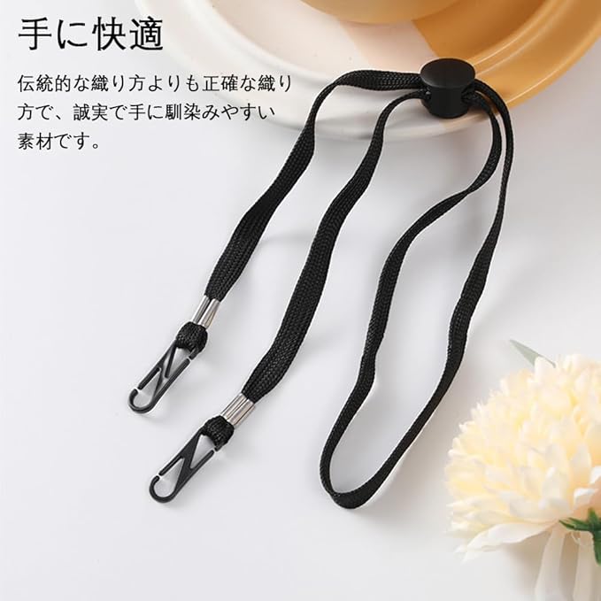 【 調節可能 】: 調節ボタン付き、紐の長さが自由に調整でき、邪魔になりません。