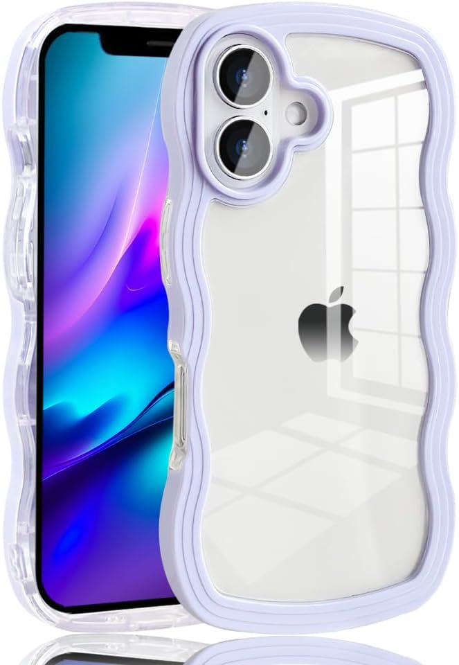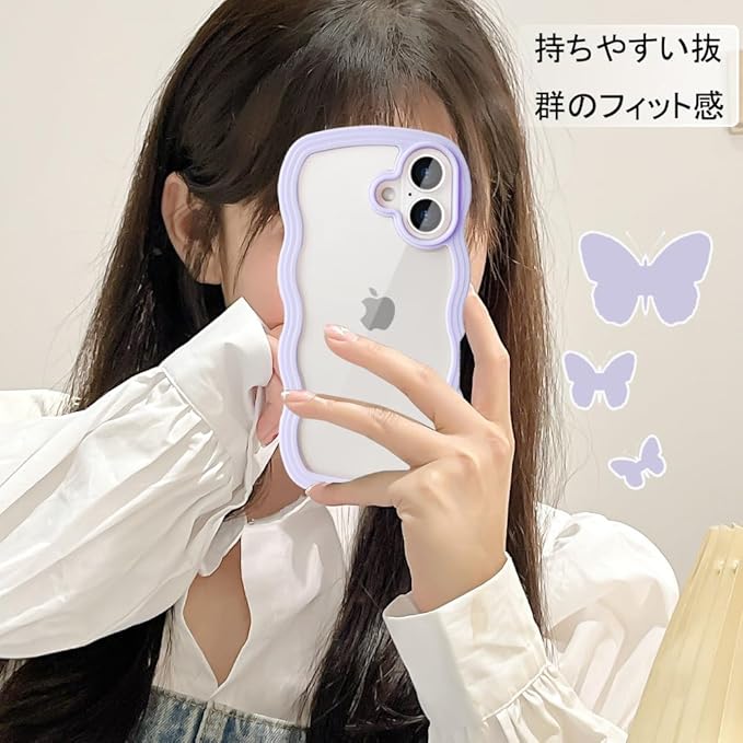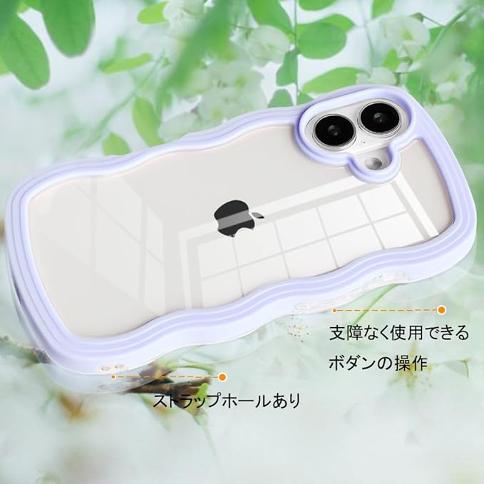 [JOOBOY] iPhone16 用 ケース クリア 透明 波型 うねうね TPU 韓国 かわいい ウェーブ ソフト 滑り止め 薄型 軽量 耐衝撃 女性 人気 おしゃれ ストラップホール付き 対応 アイフォン16 携帯電話 カバー (パープル,iPhone16)