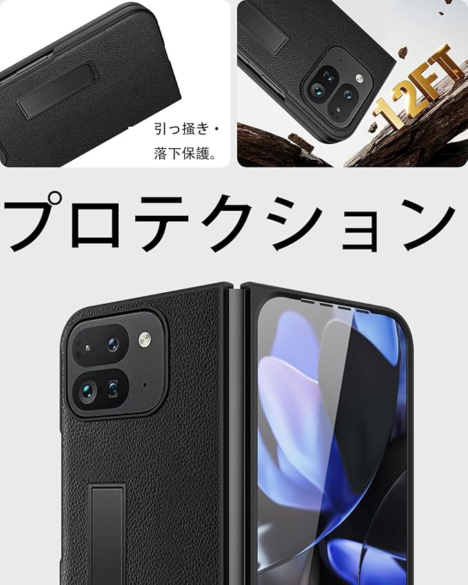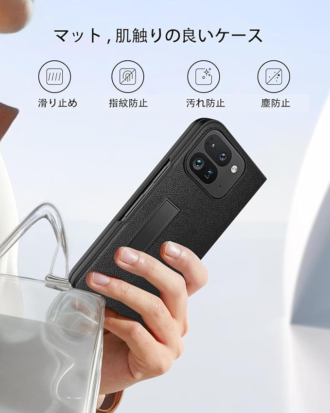 【スタンド|ヒンジ保護】対応Pixel 9 Fold スタンド,角度の調整が容易で、安定した支えを提供するだけでなく、使用の柔軟性も高めてくれます。対応pixel 9 pro fold ケース ヒンジ,ヒンジを完全に包み込み,自由に折りたためます。柔らかい革がヒンジを保護します。開閉がスムーズで妨げなし。