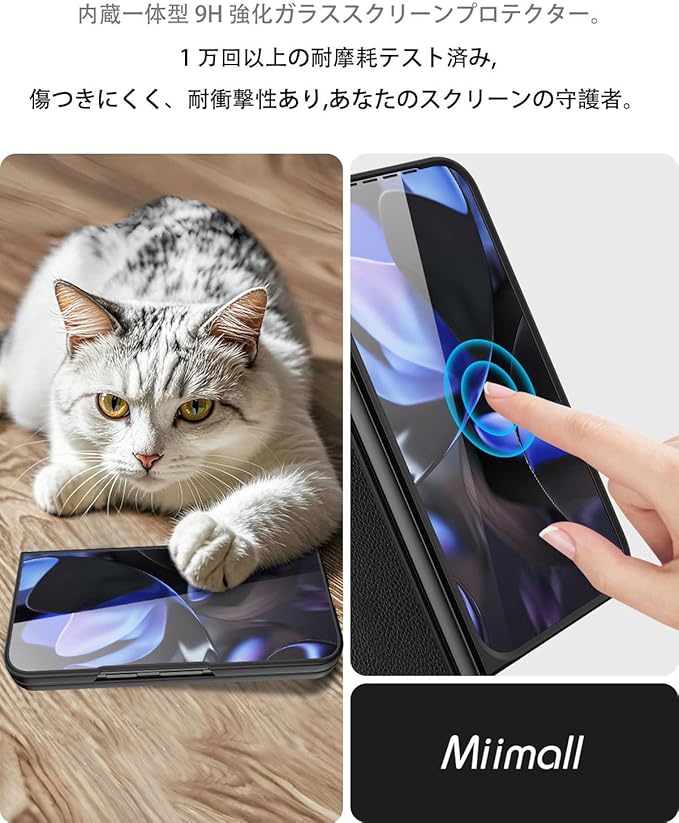 Miimall 対応Pixel 9 Pro Fold Case スタンド付き PU レザー 強化ガラスフイルム ヒンジ保護 スマホケース 軽量 耐衝撃 防塵 ピクセル9プロ フォールド 携帯ケース 柔らかい レンズ保護 落下防止 バンパー Pixel Fold 2 保護ケース(ブラック)