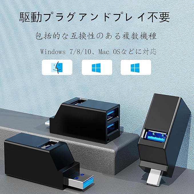【2024新登場】[ALLVD] 超小型 USBハブ 3ポート USB3.0+USB2.0コンボハブ バスパワー ポート拡張 usbハブ USBポート拡張 高速 軽量 携帯便利 (1個セット)