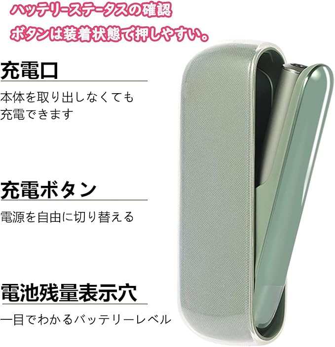 【ケースのままで喫煙OK】ケースを装着したままの喫煙が可能となっており、ボタン操作や充電もそのままでOK。