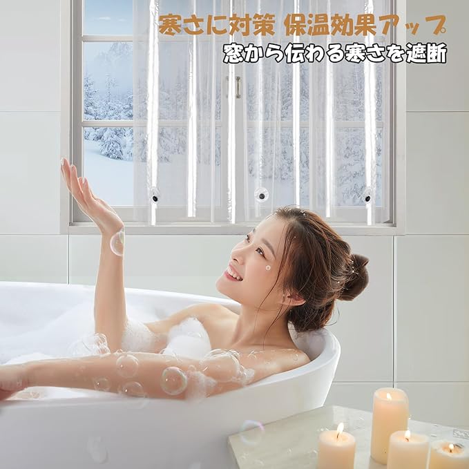 【防水防カビ加工】小窓カーテンに防水防カビ処理済み、いつでも衛生的で清潔に保ちます。100%EVAで作られ、柔らかくて手触りがよい。お手入れ簡単です、汚れても、タオルで拭いてすぐ乾きます。