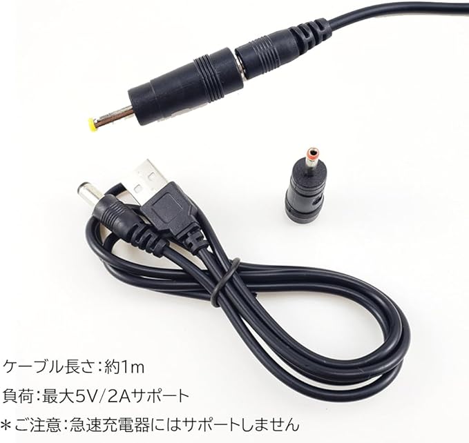 USBケーブル仕様:5V/2A プラグ:5.5*2.5(5.5*2.1にも適用)mm 長さ:約1m