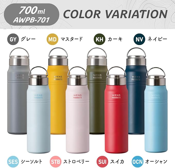 アトラス 水筒 700ml 保冷 保温 真空断熱 ステンレス マグボトル 軽量 直飲み 洗いやすい アウトドア WENS ウェンズ オーシャン 水色 ブルー 白湯 AWPB-701OCN