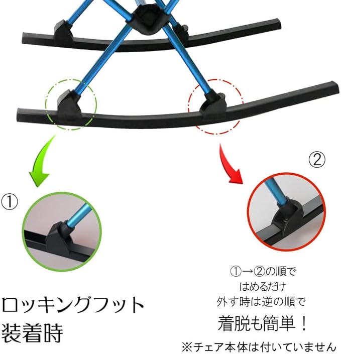 長野アウトドアスタイルが作ったヘリノックスチェアゼロ専用のロッキングフットです。ヘリノックスチェアをロッキングチェアにするための専用アクセサリーです。床にキズを付けにくくする為のインドア用プロテクション付き。