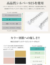 [シルバー925素材] 素材はシルバー925を使用し、ロジウムコーティングを施している為、素材の輝きが長持ちいたします。シルバー925素材はアレルギーが出にくくジュエリーとして加工しやすい点で大変優れた素材ですが、ご使用とともに輝きが落ちてきたなと感じた際にはシルバー用のジュエリークロスで磨くことをお勧めいたします。