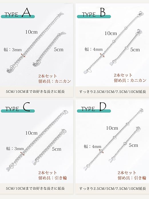 [商品説明] 仕様:2本セット 長さ:5cm、10cm カラー:ピンクゴールド、シルバー、ゴールド