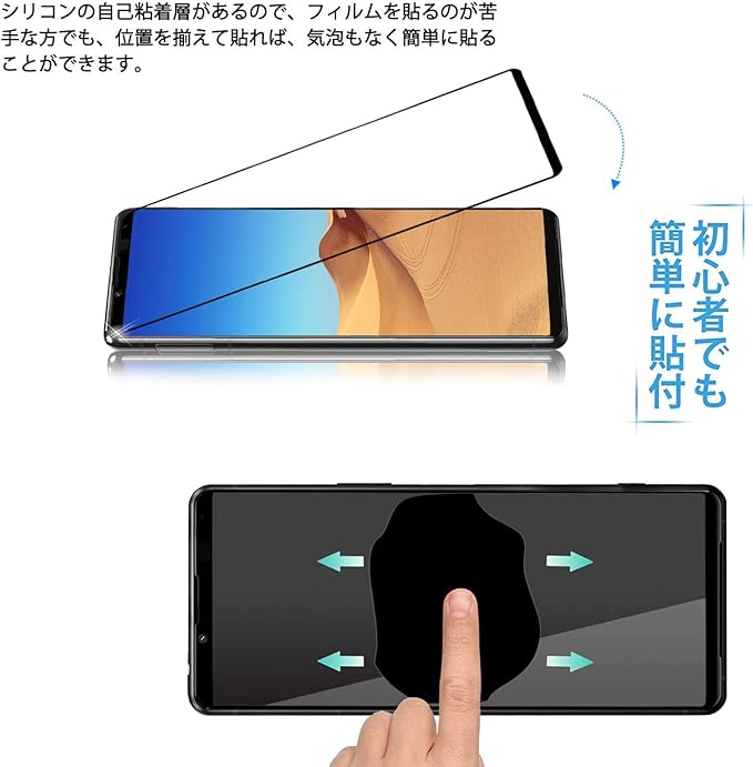 特徴 滑らかなタッチ操作 気泡防止 指紋付着防止 油脂汚れ防止 飛散防止 全面保護