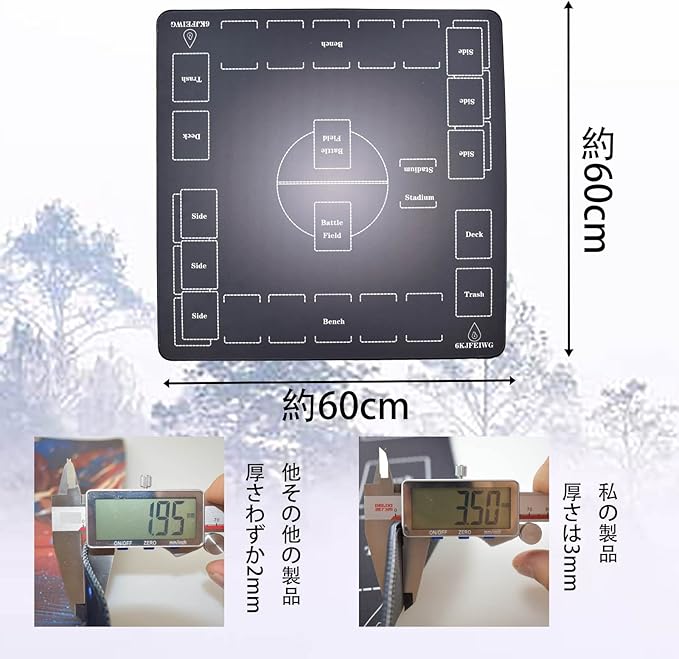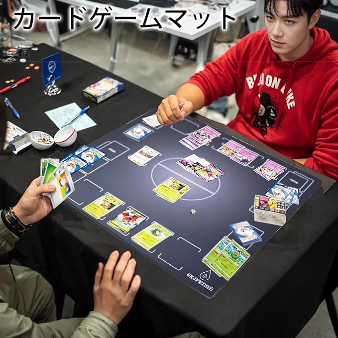 6KJFEIWG プレイマット カードゲーム カード ラバープレ プレイマット滑り止め (60 60cm)ぷれいまっとマット 収納袋付き 端縫い(黑)