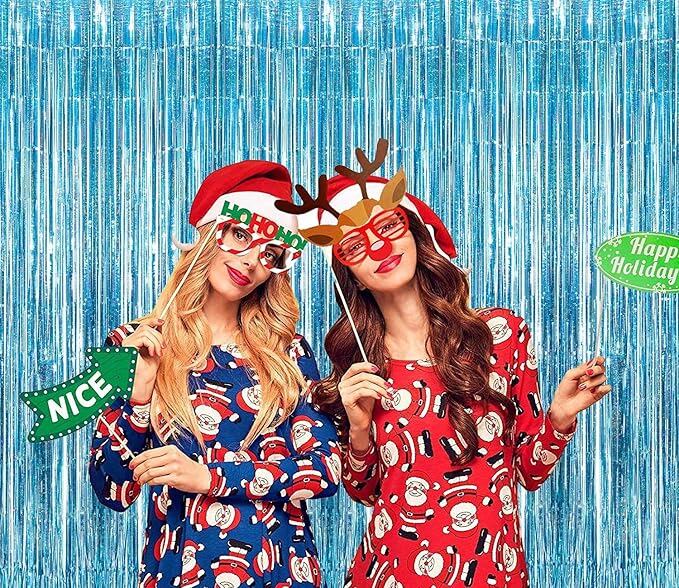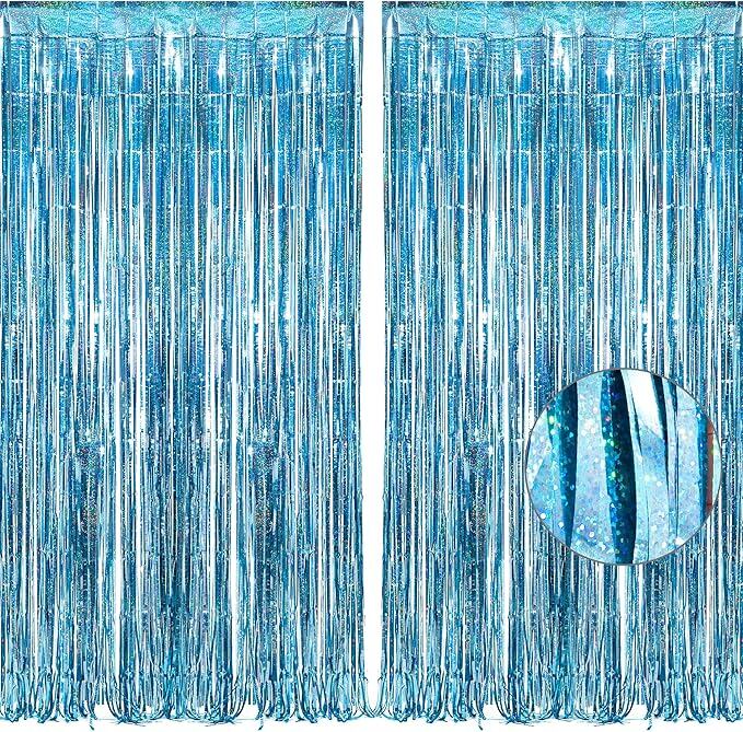 2個セット BRAVESHINE タッセルカーテン キラキラ 背景 明るい光沢 誕生日 飾り付け 100cm*250cm 誕生日 飾り カーテン birthday decorations パーティー デコレーション party decoration (ブルー)